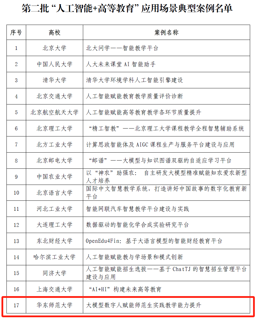 教育部近日发布通知,公布第二批32个“人工智能+高等教育”应用场景典型案例,性爱直播 的“大模型数字人赋能师范生实践教学能力提升”成功入选。